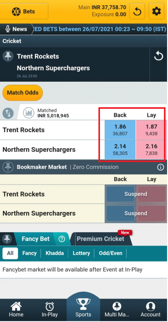 “পিছনে” বাজি এবং মতভেদ সবসময় নীল রঙে চিহ্নিত করা হয়, এবং ‘লে’ বাজি সবসময় গোলাপী চিহ্নিত করা হয়। “পিছনে” বাজি ধরার একটি ফলাফলের উপর বাজি ধরা হয় যখন “লে” বাজি আপনাকে বুকমেকারের ভূমিকা পালন করতে দেয়। একটি সাধারণ বাজি, আপনি সর্বদা বিরোধী বাজি অংশীদারিত্ব জিততে দাঁড়ানো; যা, একটি ফলাফলের উপর বাজি ধরার নয়।