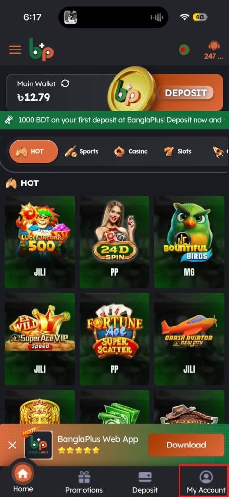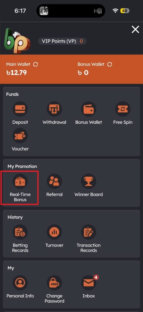 2. Go to My Account, then click the Main Wallet tab and select the Real-Time Bonus icon.