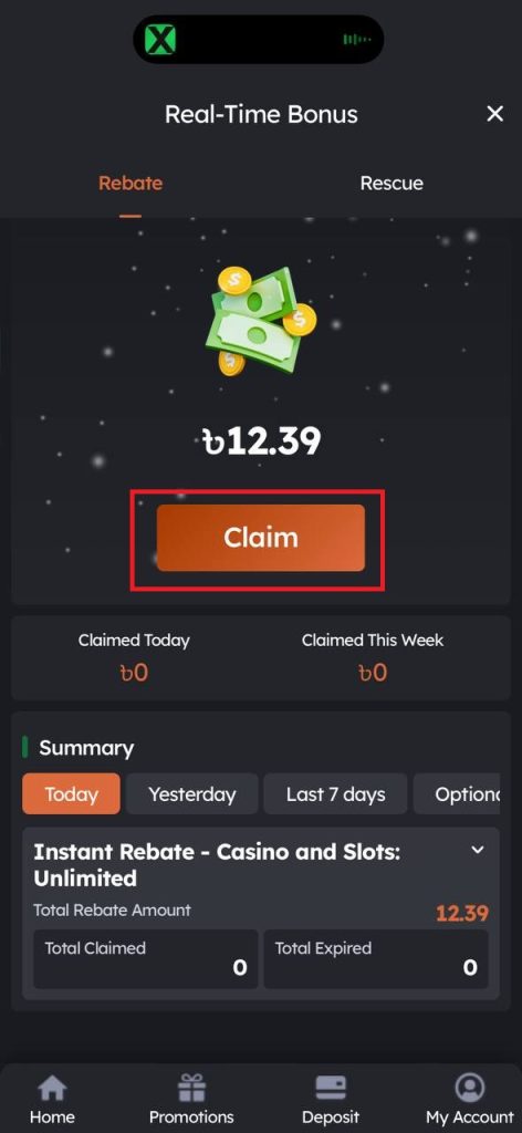 3. Under Available Amount, click Claim to redeem your Rebate or Rescue bonus.